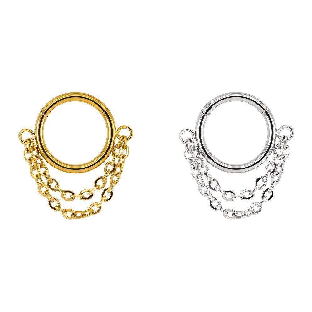 Clicker Hoop Earring 1.2mm with Chain Silver and Gold