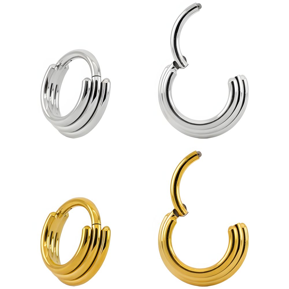 Clicker Hoop Earring 1.2mm Triple Silver and Gold