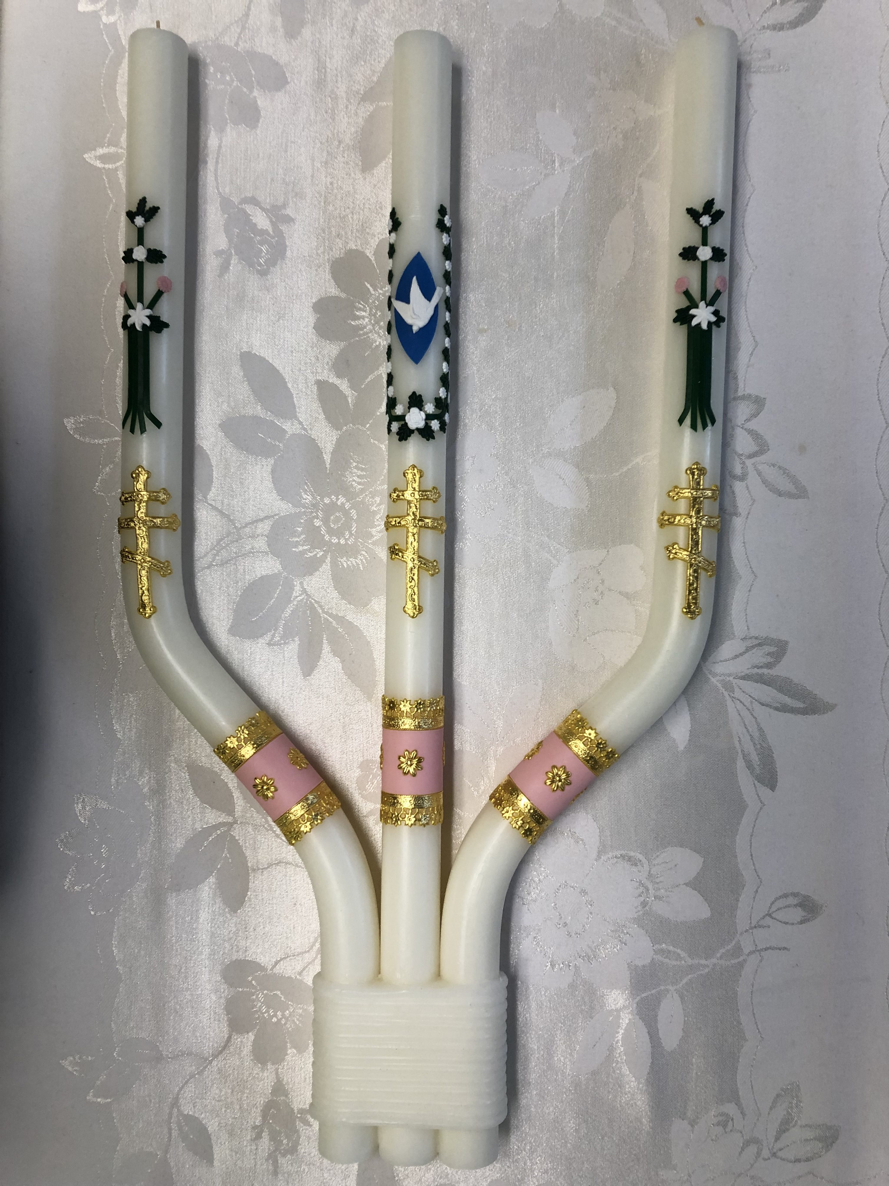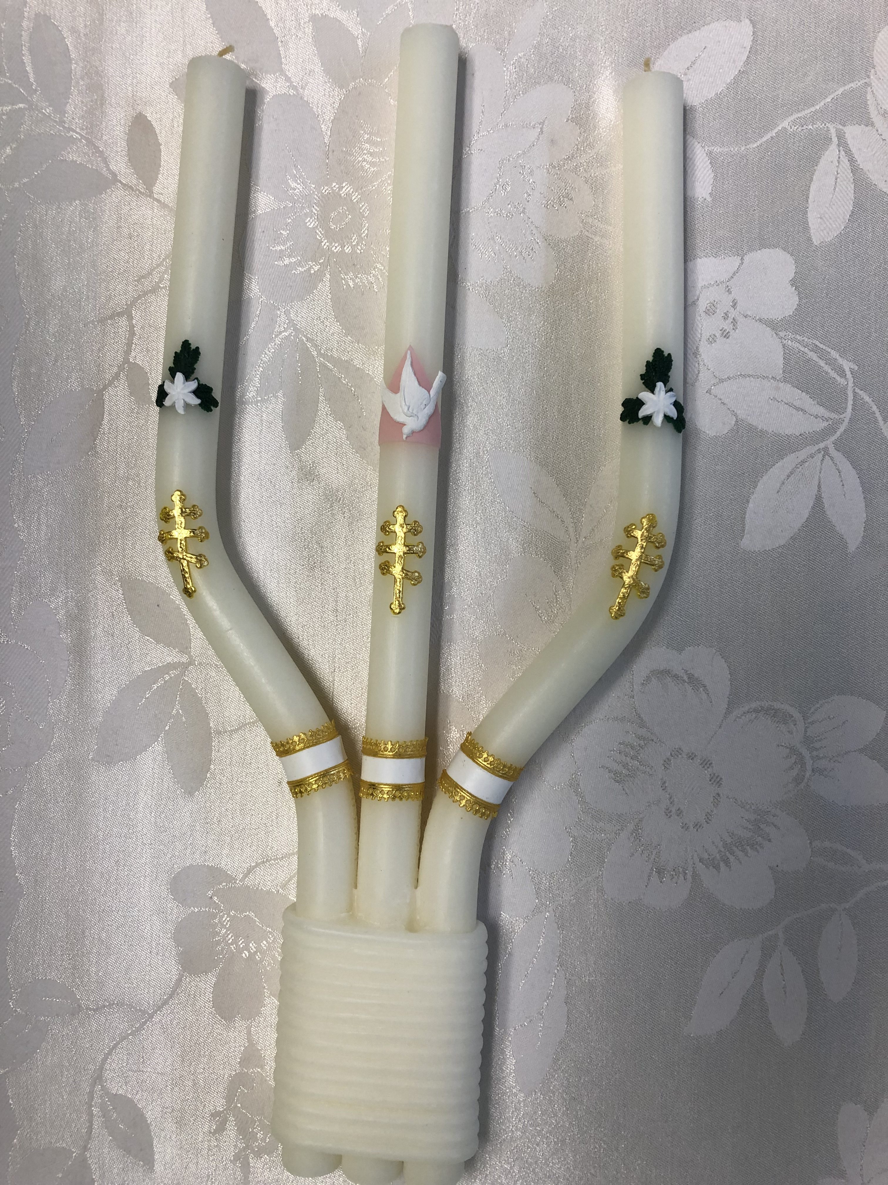 Greek Triple Candle #3. Ornamented 51% Beeswax
