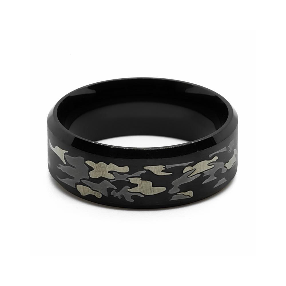 Men's Steel Ring with Camo Pattern