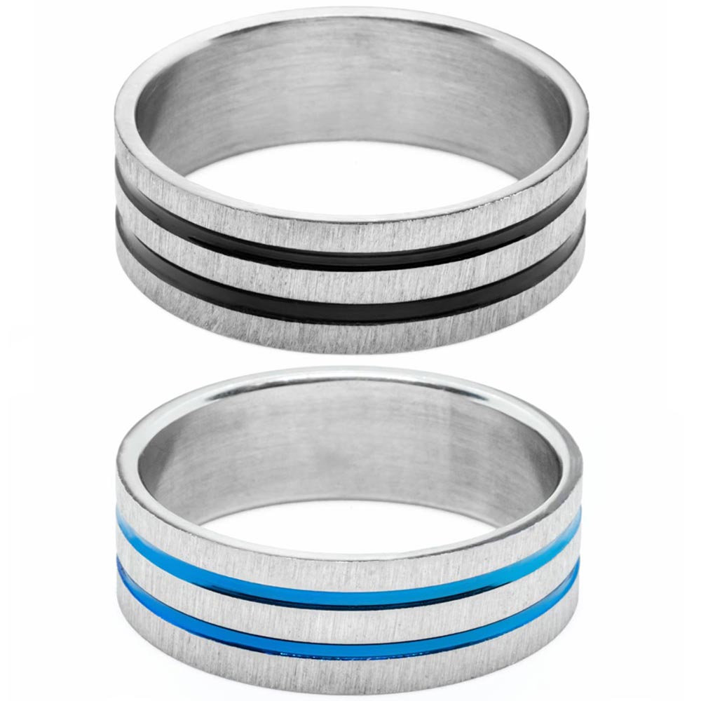 Men's Steel Ring with Blue Line