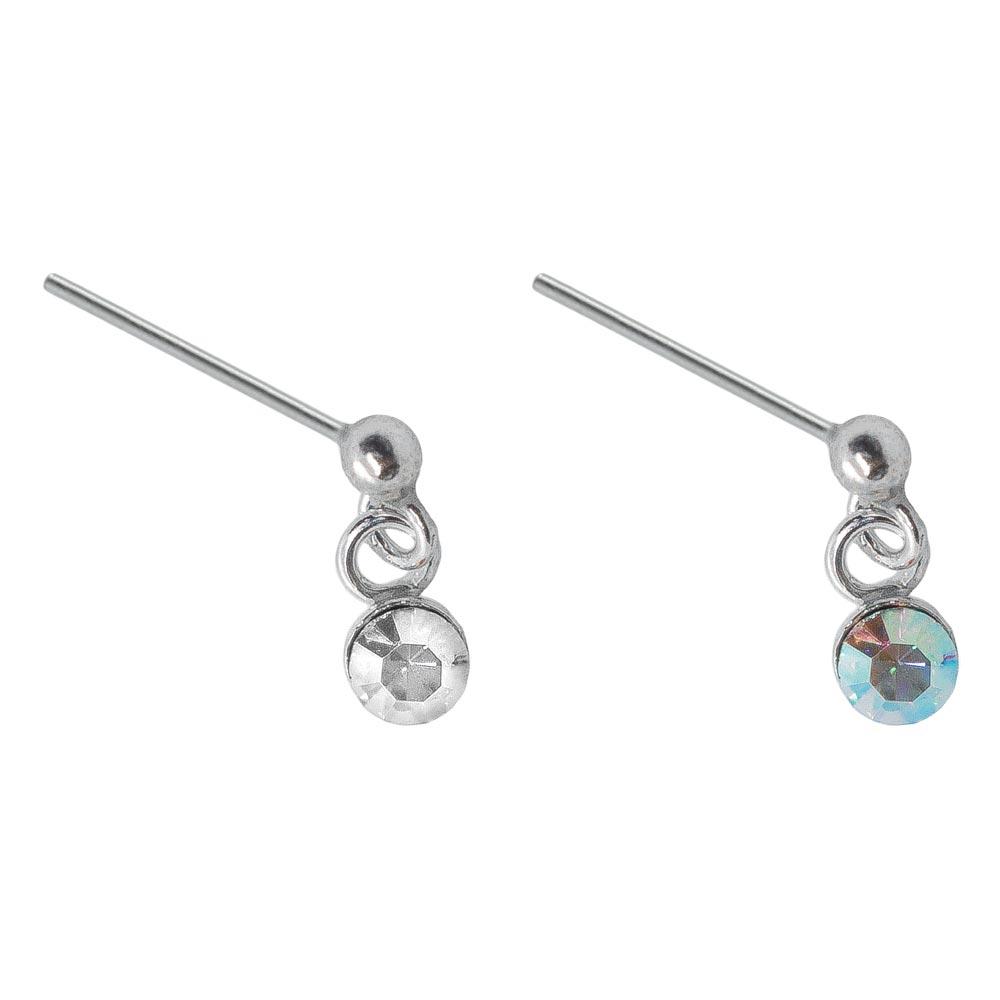 925 Silver Straight Nose Pin with Dangle Crystal