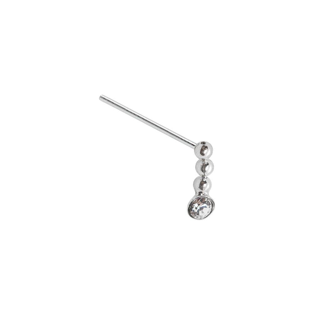 925 Silver Straight Nose Pin with Dangle Crystal and Balls