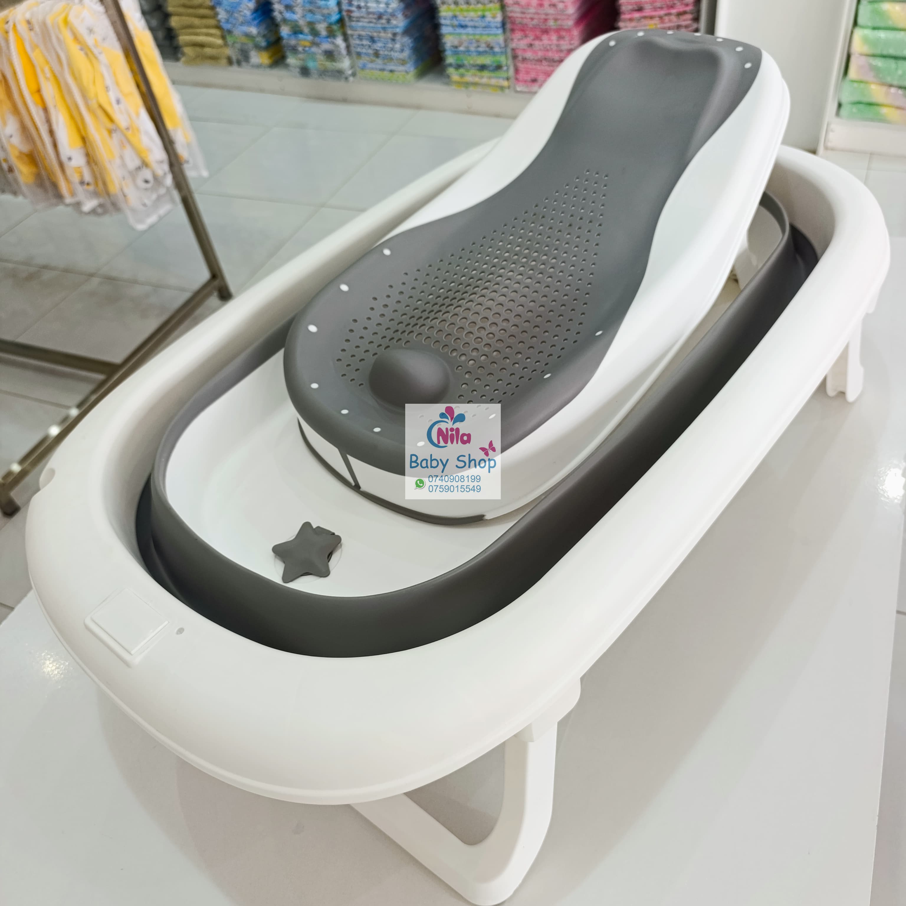 Foldable Baby Bathtub with Infant Support Seat – Portable Newborn Bath Tub with Non-Slip Base